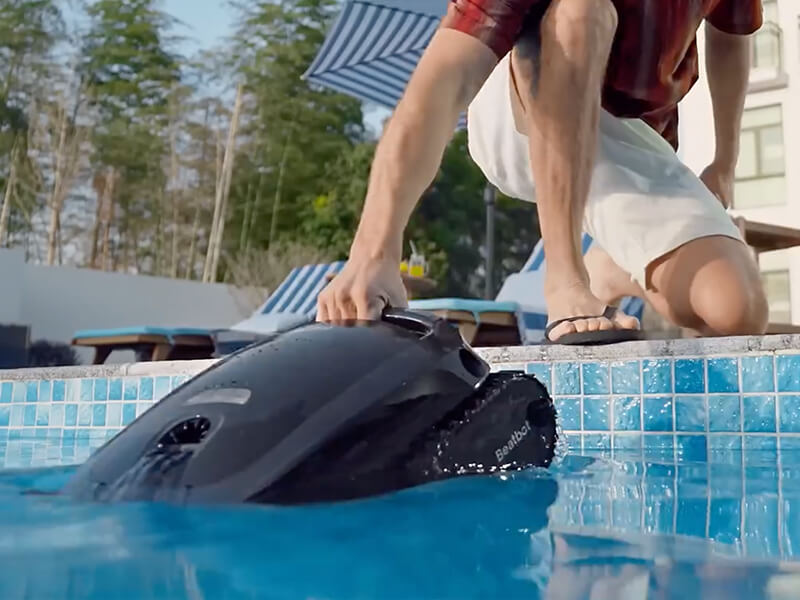 When the robot is floating on the surface and has drifted away with the water, one tap in the Beatbot app brings it back to the pool edge and holds it there for quick retrieval.