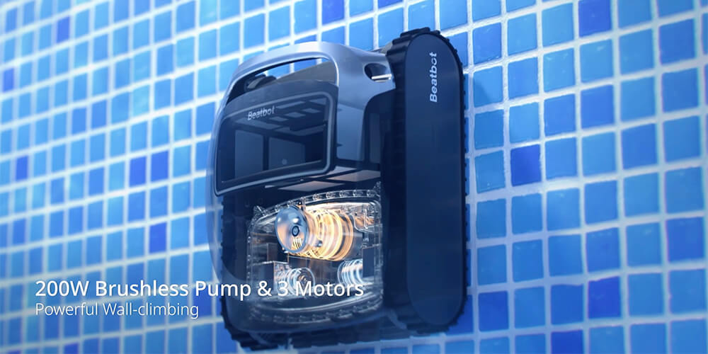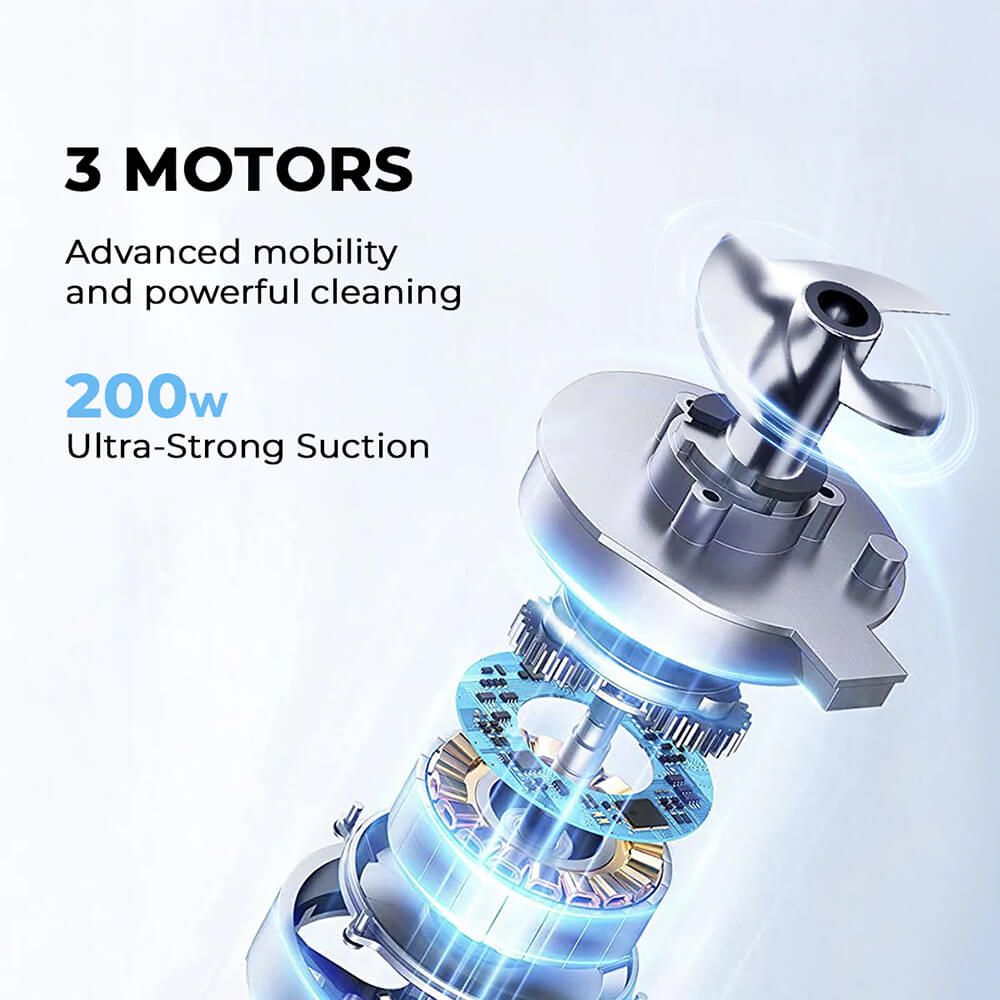 Equipped with a 200 W brushless main pump and 3 motors, delivering up to 20,800 LPH suction for stronger pickup and consistently cleaner, clearer water.