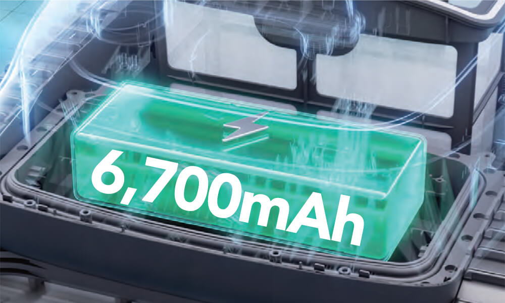 A 6,700 mAh lithium-ion pack powers up to 3 hours of floor cleaning per charge. When you’re done, place it on the cordless dock for ~3 hour (88 W) wireless recharging—simple and tidy.
