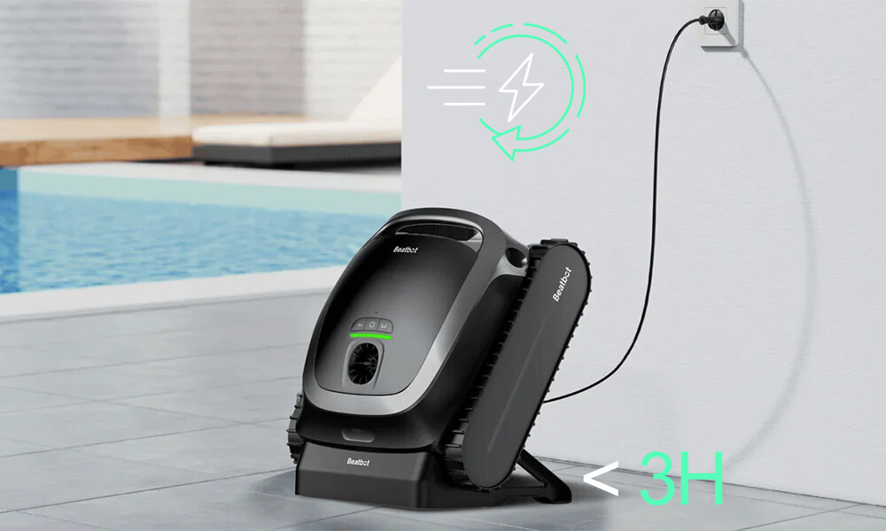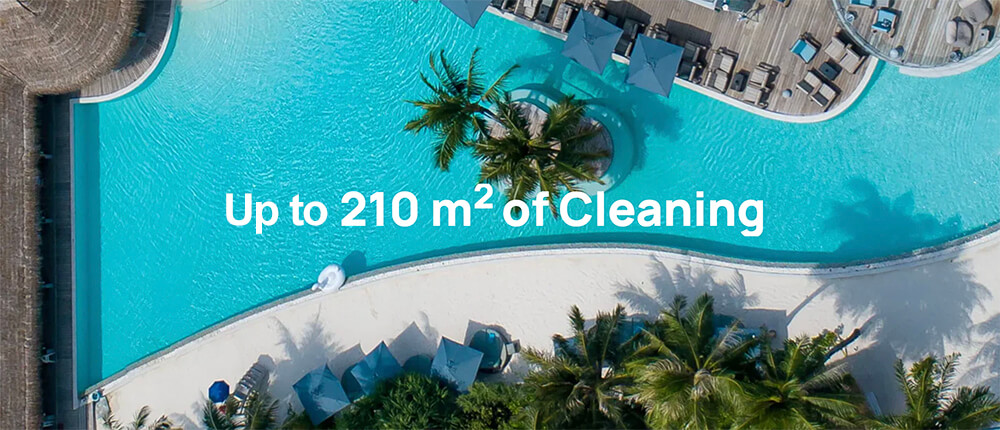 Up to 3 hours of cordless floor cleaning per charge, ideal for pools up to 210 m² (lab-tested; actual results may vary).