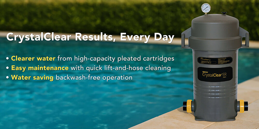 Ideal for fresh, salt, and mineral pools, the CrystalClear ER Series brings the clarity you want with fewer steps and less maintenance. When the gauge rises, simply hose the reusable cartridge and enjoy season-long reliability backed by Davey’s 10-year tank warranty.