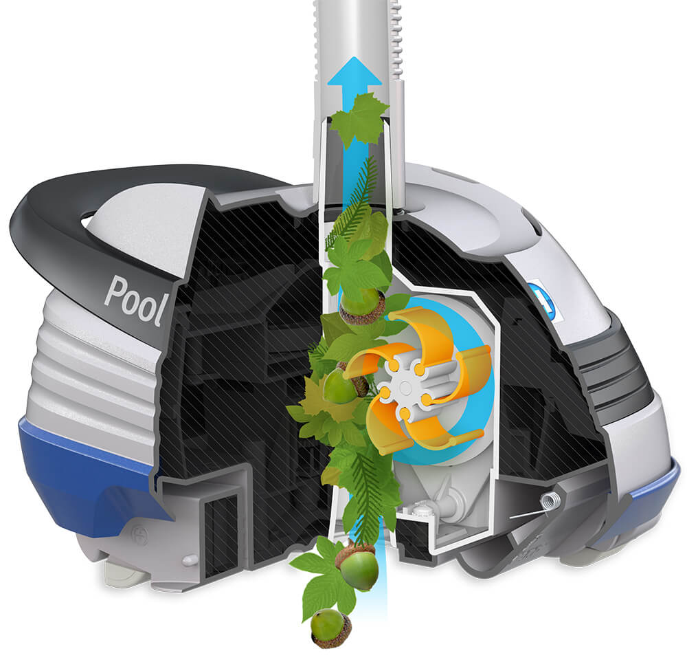 • Patented V-Flex technology features, a flexible blade turbine that optimises pool cleaning and captures larger debris