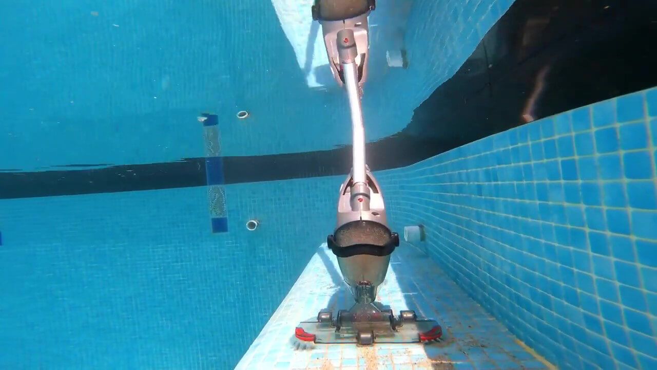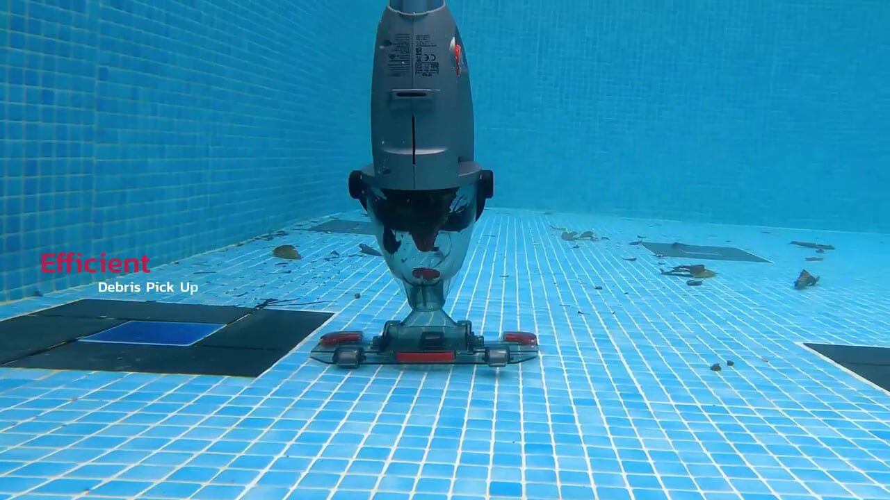 - Scrubs and vacuums. Its removable brushes scrub dirt out of the pool surface. Together with its pivoting head and wheels, it easily reaches all areas including steps and other obstacles.