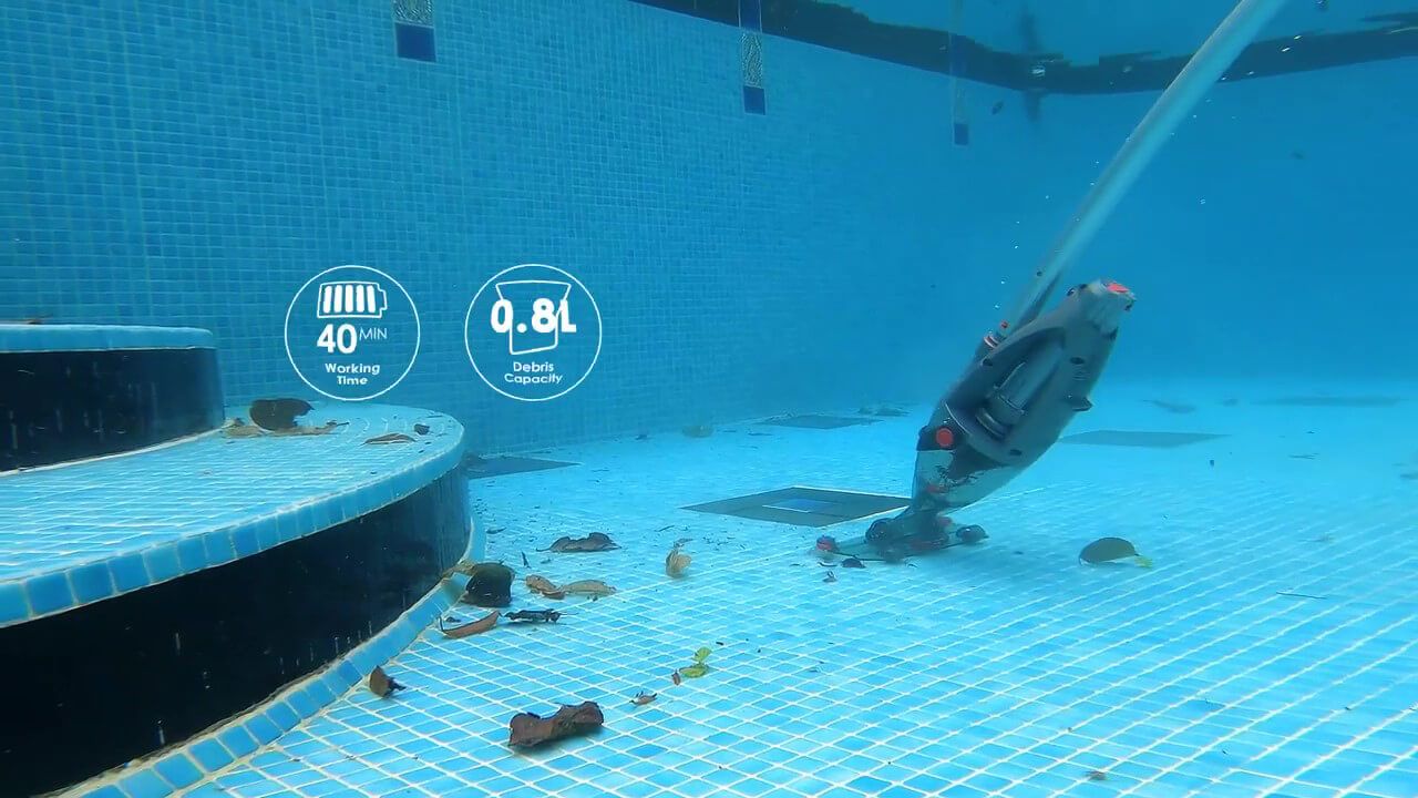 - Convenient. Its large 0.8L capacity translates into sustained operation with a minimum loss of suction and no fuss. The filter is easy to access and clean. A small valve allows filtered water to easily flow out of the cleaner when pulled out of the water.