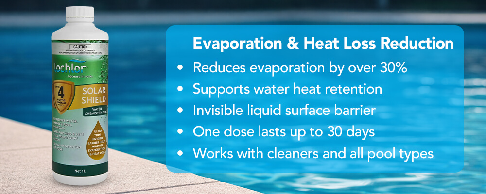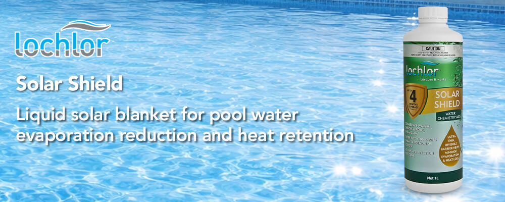Lo-Chlor Solar Shield is a patented liquid solar blanket developed to support reduced water evaporation and heat loss in residential swimming pools.