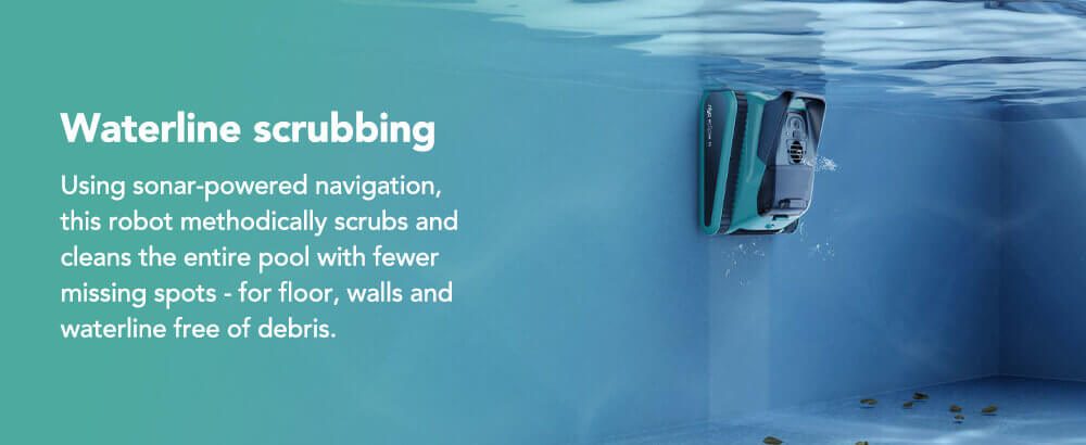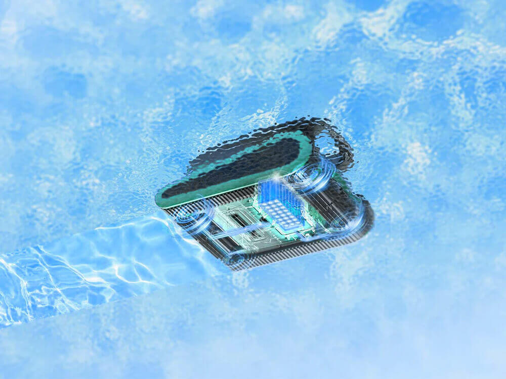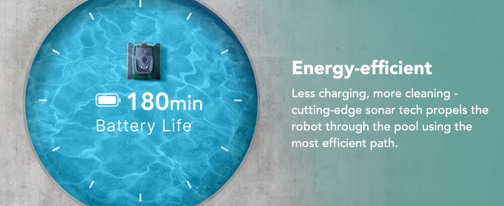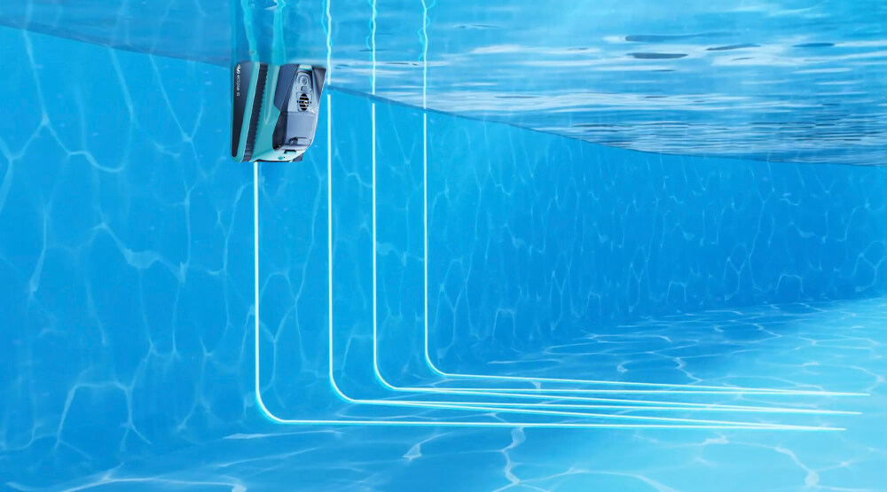 Systematically scans the pool to follow precise, energy-efficient paths – more cleaning, less charging.