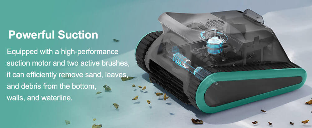 Dual-drive motors for agile movement plus a dedicated suction motor for strong debris pickup.