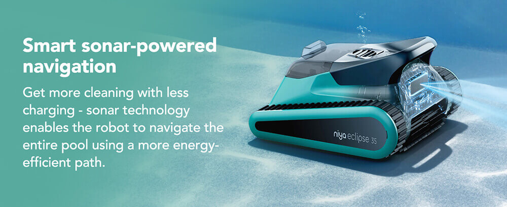 The Niya Eclipse 35 makes pool care simple and stress-free. Fully cordless and powered by smart sonar navigation, it scans your pool to choose the most efficient cleaning path – giving you full coverage with minimal energy use.