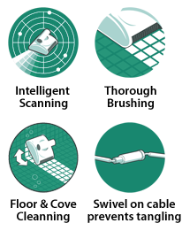 • Easy to use: Plug and Play operation. Simply plug it in, turn it on and drop it into the pool and it will automatically scan the pool and efficiently clean it.