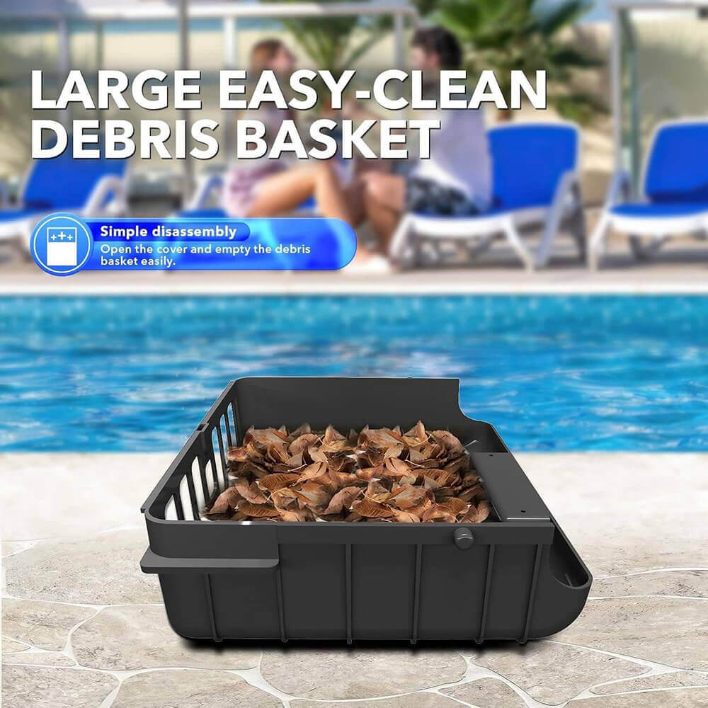 - Integrated Chemical Dispenser: Built-in compartment for chlorine tablets or water conditioners to help maintain water hygiene while the skimmer operates.