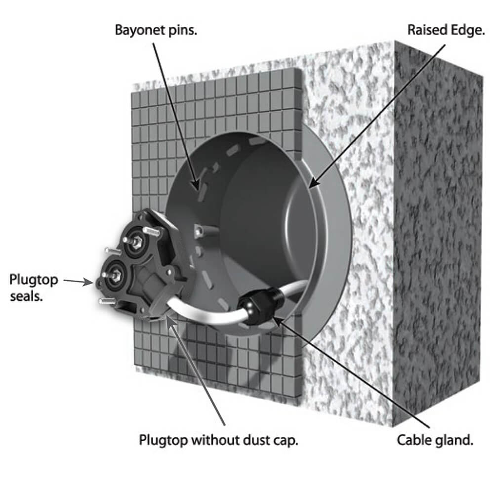 The WN 909 Concrete Mounting Kit includes a robust mounting ring, foam insert, and an 8mm tile edge. Featuring a self-adjusting alignment ring, it ensures a perfect finish while securely mounting your pool light.