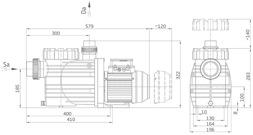 - Permanent-magnet motor with axial rotor (DC), optimised for pool & spa systems