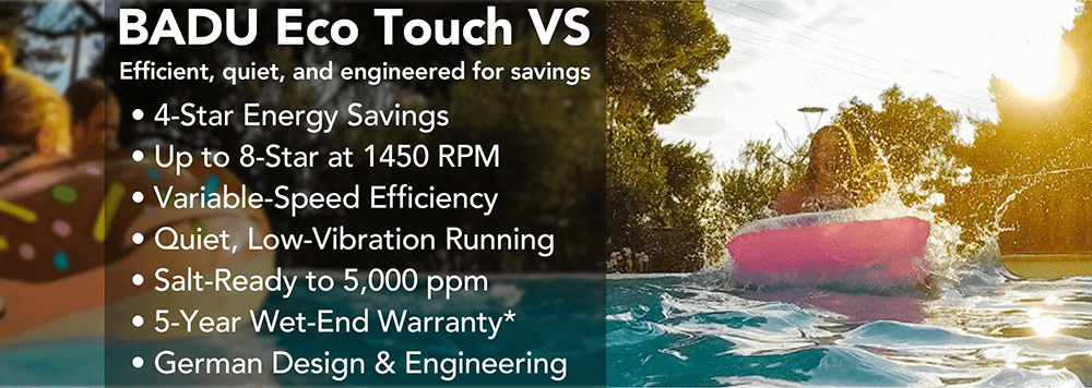 The German-engineered BADU Eco-Touch VS combines a patented permanent-magnet (DC) motor with variable-speed smart controls to deliver powerful performance with far lower running costs. With a 4-Star energy rating — and up to 8-Star efficiency when programmed at 1450 RPM — it helps reduce electricity bills and CO₂ emissions compared with conventional induction pumps. Many owners recover their investment in less than two years (actual savings depend on usage and tariffs).